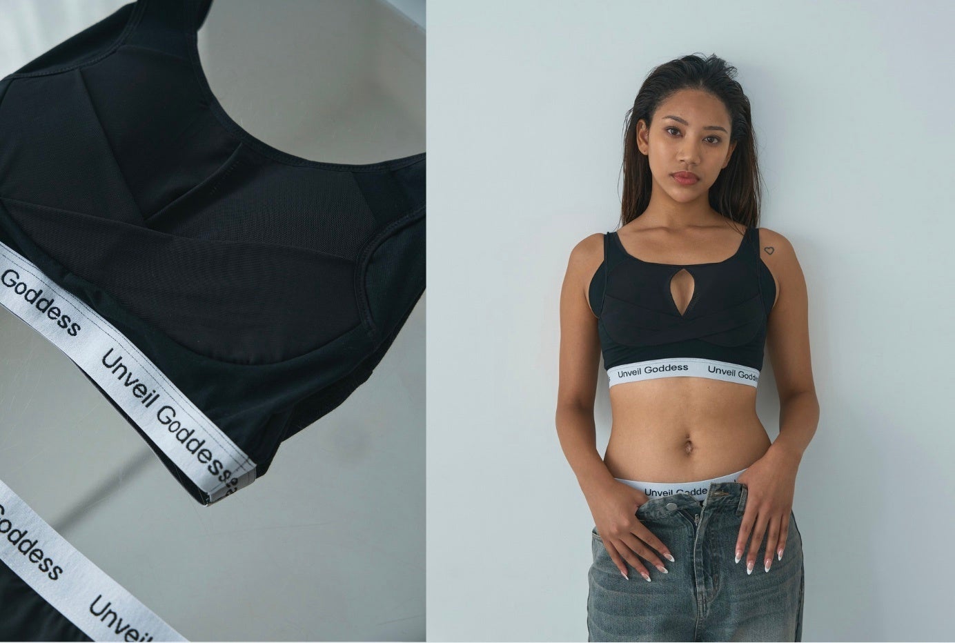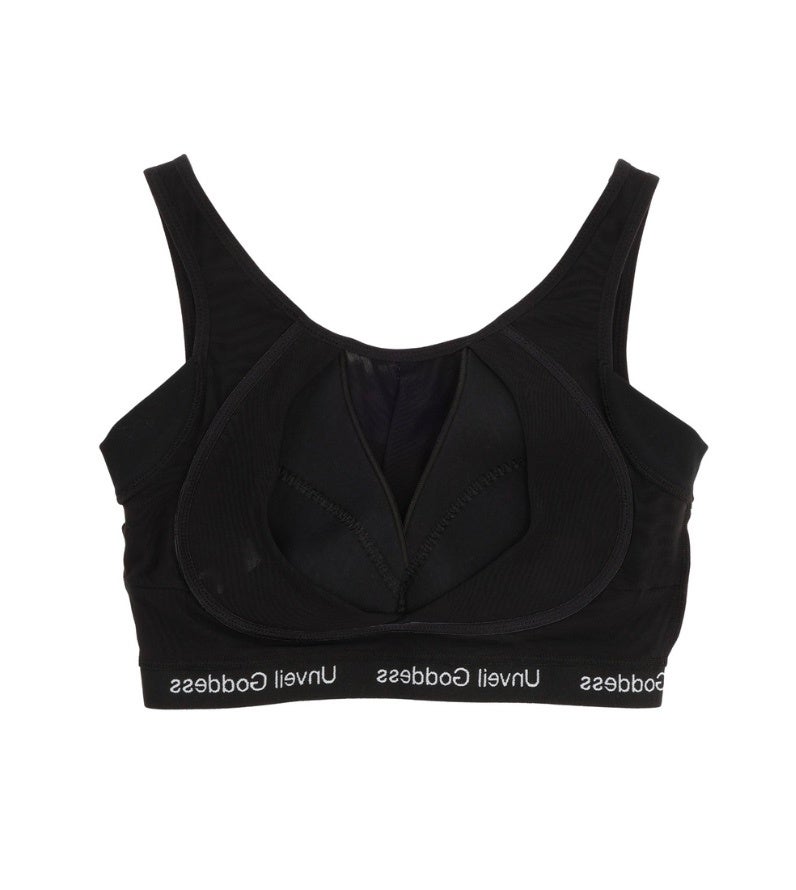 くれいじーまぐねっとエア監修の機能性とファッション性を兼ね備えた、日常使いにぴったりのナイトブラ。ブランドコンセプトである「Unveil Goddess」のロゴがあしらわれたジャガードゴムを使用し、コットン素材のカットソーとパワーネットを組み合わせ、スポーティでありながらモード感溢れるデザインが特徴です。柔らかなコットンが肌に優しくフィットし、パワーネットがバストをギュっと包み込み適度なサポート力を発揮。ナイトブラでは今までになかったスポーティーなデザインで、リラックスタイムはもちろん、スタイリッシュなルームウェアとしても、快適さとおしゃれさを両立させたアイテムです。