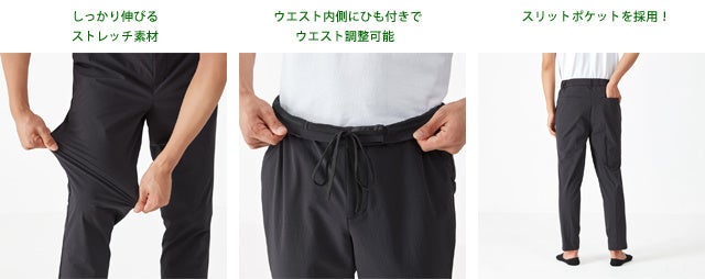 そこで、BODY WILDから新たにゴルフに特化したパンツを開発しました。年間を通して快適な素材を用い、さらにハイストレッチ性が特徴の「ナイロンテーパード」は後身頃のシームが動きやすさとスッキリ感を演出します。秋冬用として、ソフトで温かいフリース素材をストレッチナイロン生地にボンディングした2層構造設計の「ボンディングテーパード」は保温性と快適性に優れたパンツです。さらにソフトな履き心地とカジュアルすぎない素材感が特徴の「ジョガーパンツ」は日常にも履きこなせるスタイリッシュなパンツです。