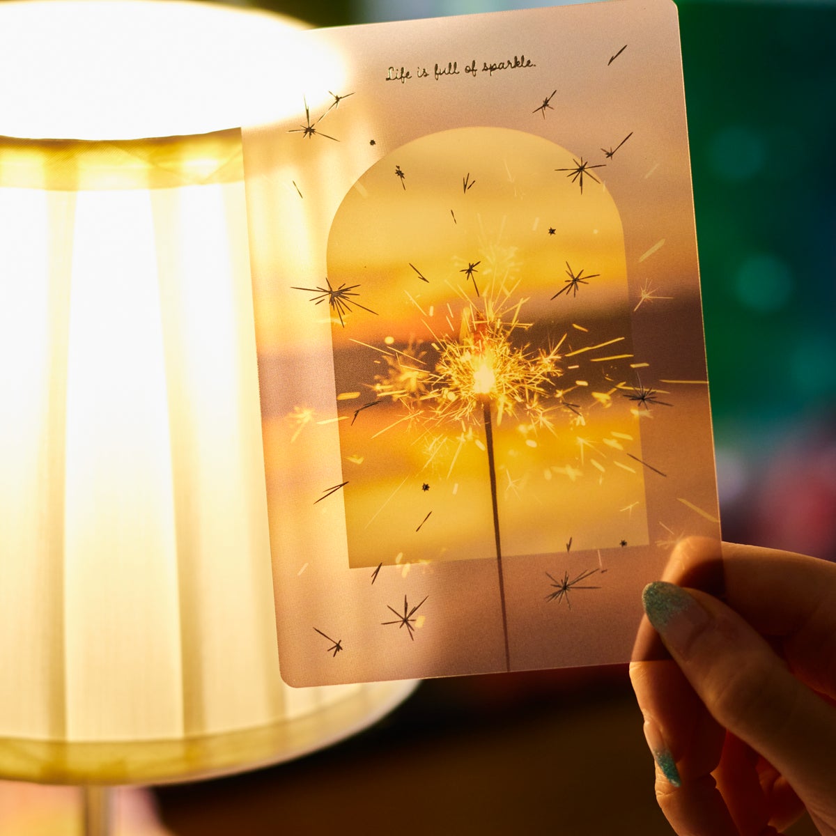 Ryuryuの「透明カード TOC-10 スパークル」は、光を受けてきらめく銀箔と、厚みのあるクリア素材が特徴のカードです。2025年「文房具屋さん大賞」を受賞したそのデザインは、カードとしてだけでなく、窓辺やデスクを彩るインテリアとしてもお楽しみいただけます。特製パッケージ入りで、そのまま郵送できる仕様も魅力のひとつです。