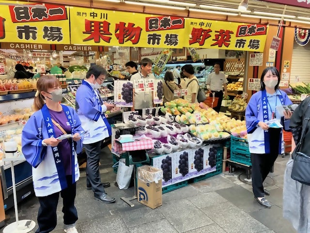 びほくエリアで生産されるピオーネは、関西市場で取引されるピオーネのおよそ8割を占めています。びほくエリアの至宝「美王🄬」をより多くの方に知っていただくために、関西圏でPRイベントを実施します。