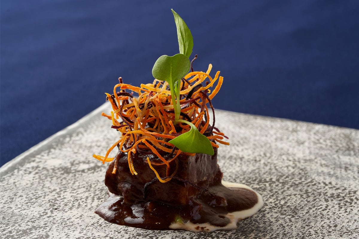 じっくり煮込んだ神戸牛の赤ワイン風味 兵庫県産人参のフリットと共に
