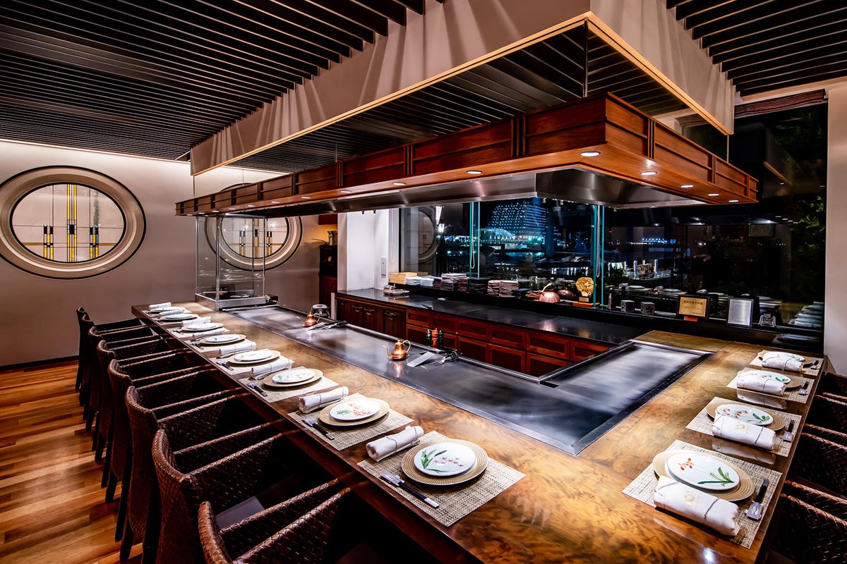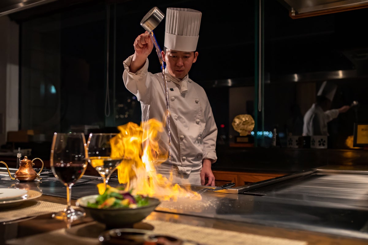 地元兵庫の食材を贅沢に使い、五感を刺激するライブ感あふれる料理をお愉しみいただきます。オーシャンビューの鉄板焼カウンターからは、時間とともに表情を変える神戸港の夜景をご覧いただけます。