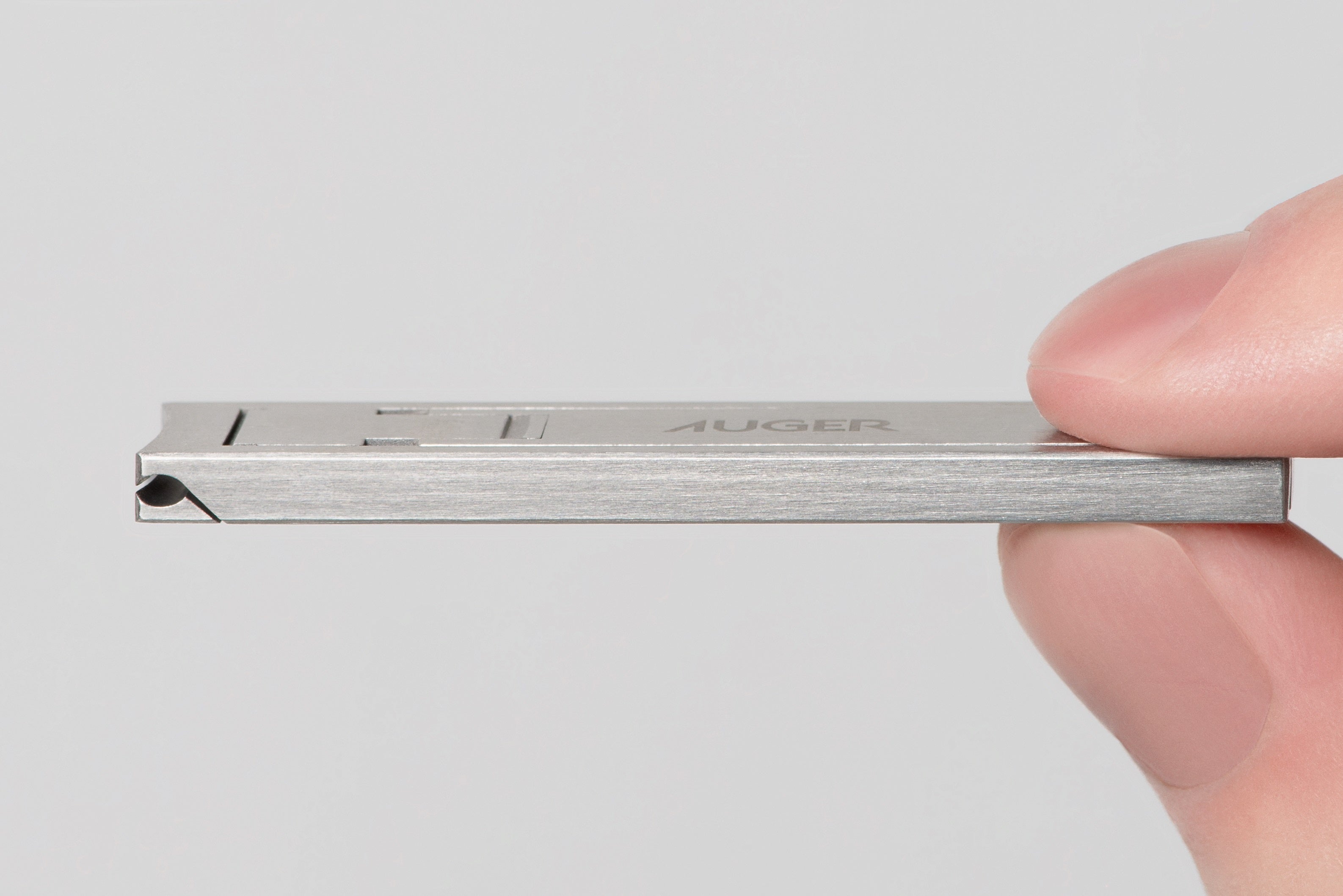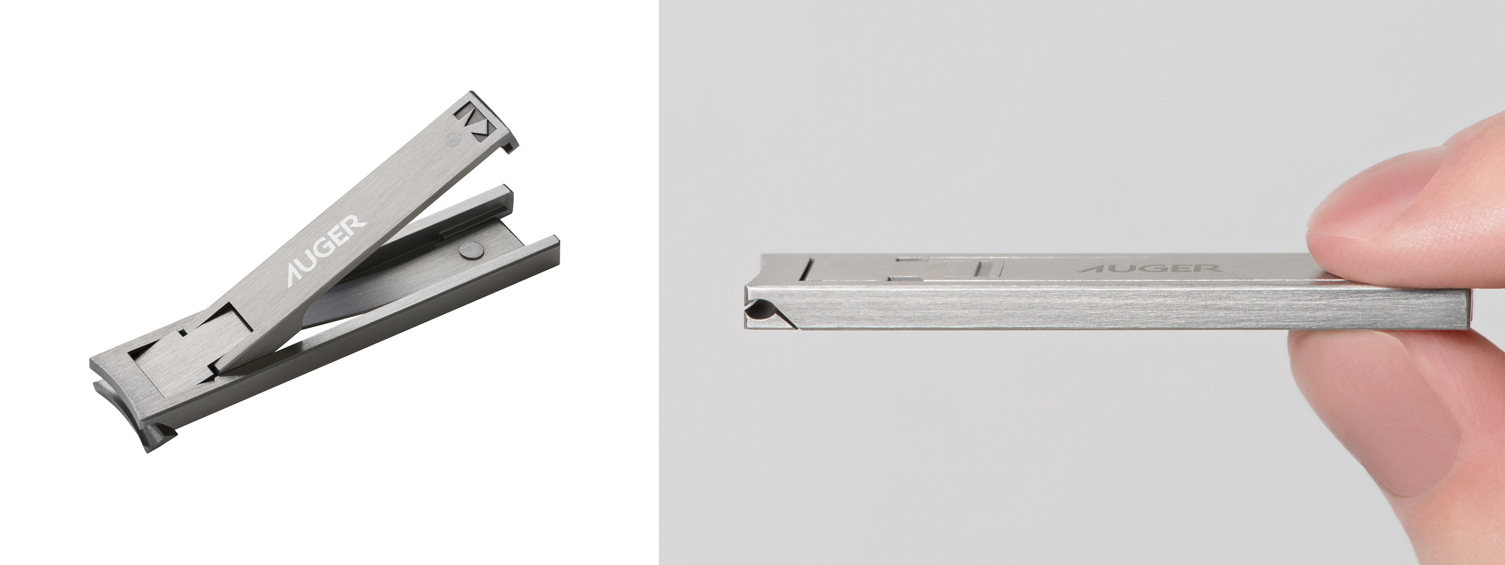 「身だしなみを整える時間」をより豊かで、より心地よいものへと導くべく誕生したグルーミングツールブランド「AUGER」より、この度縦60mmx横13mmx厚さ3.9mmと非常にコンパクトでスタイリッシュなデザインの「ツメキリ Leaf」が新登場。