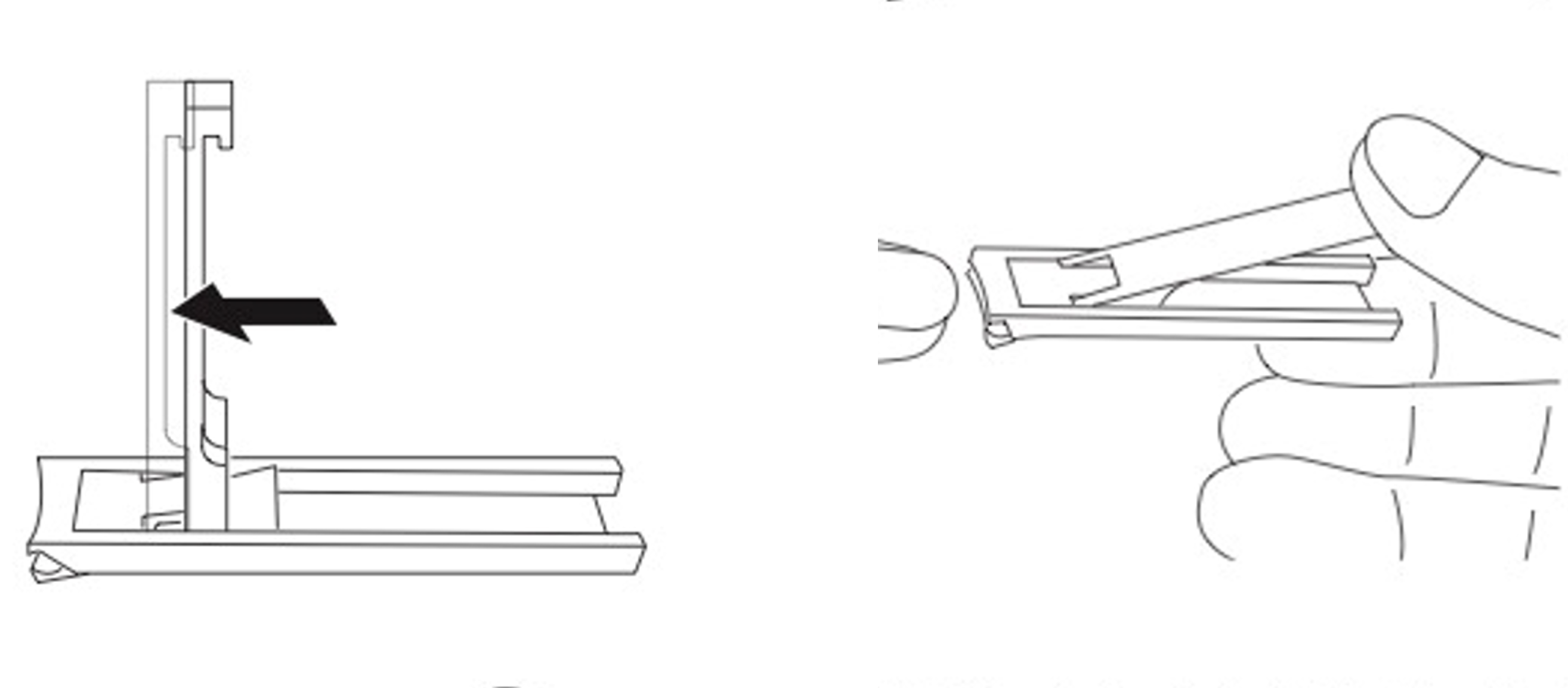 ②テコ(レバー)のみを立てて刃先方向にスライドさせ、テコを寝かせて使用します。