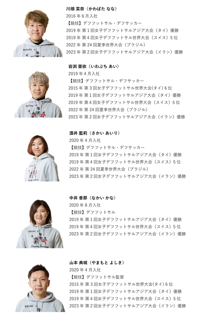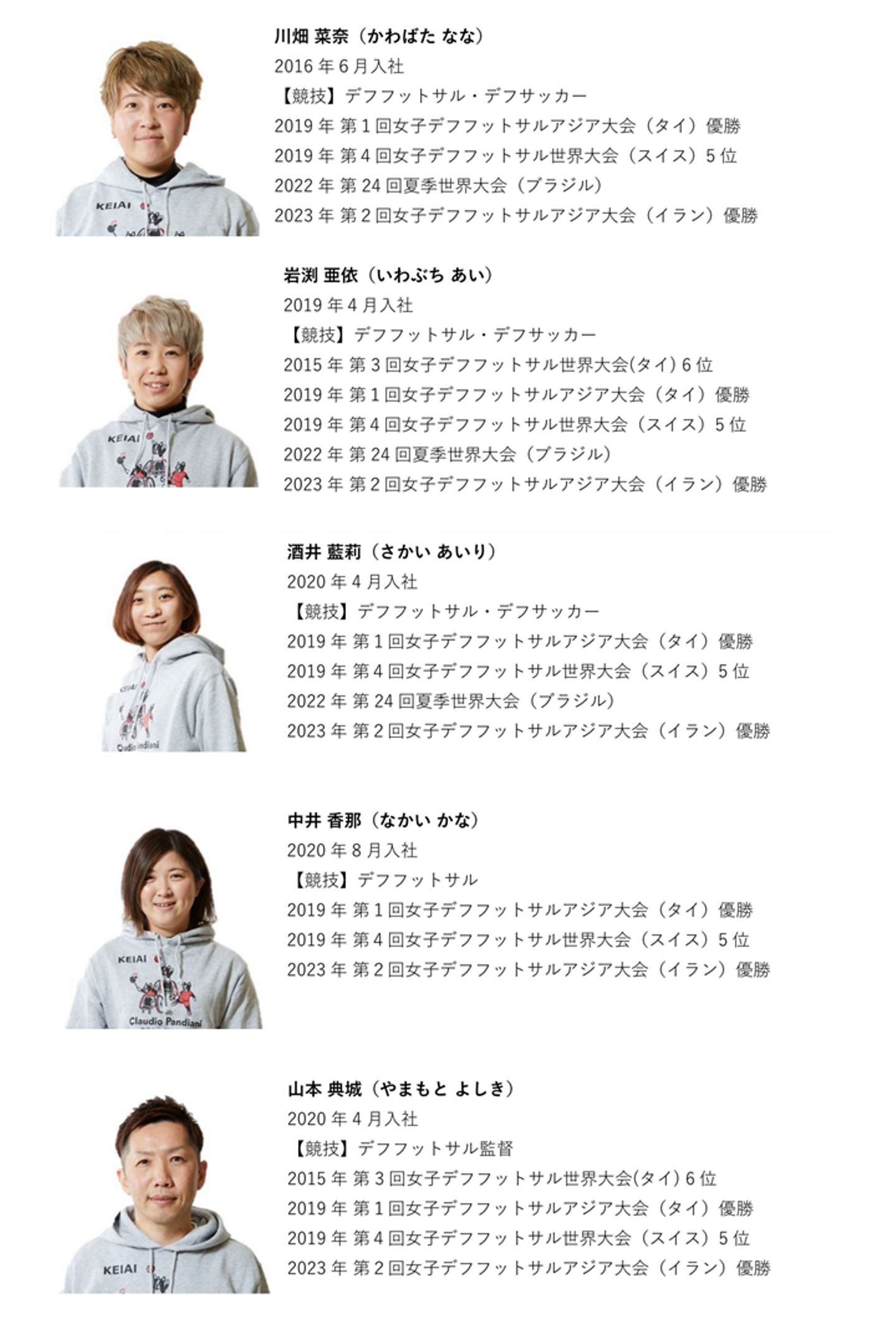 現在は、9名が所属しており「デフフットサル」、「デフサッカー」、「ろう者柔道」、「車いすバスケットボール」、「車いすバドミントン」の各競技で活躍しています。