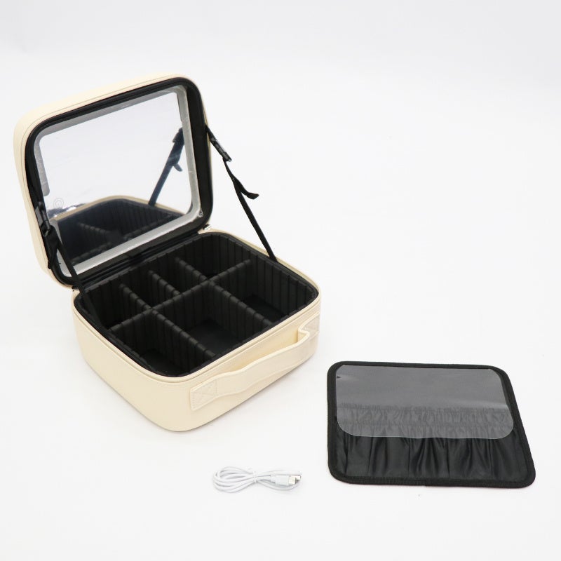 新発売!!スッキリ収納上手に。【SAFFRON】LEDミラー付きコスメボックス HED-0932