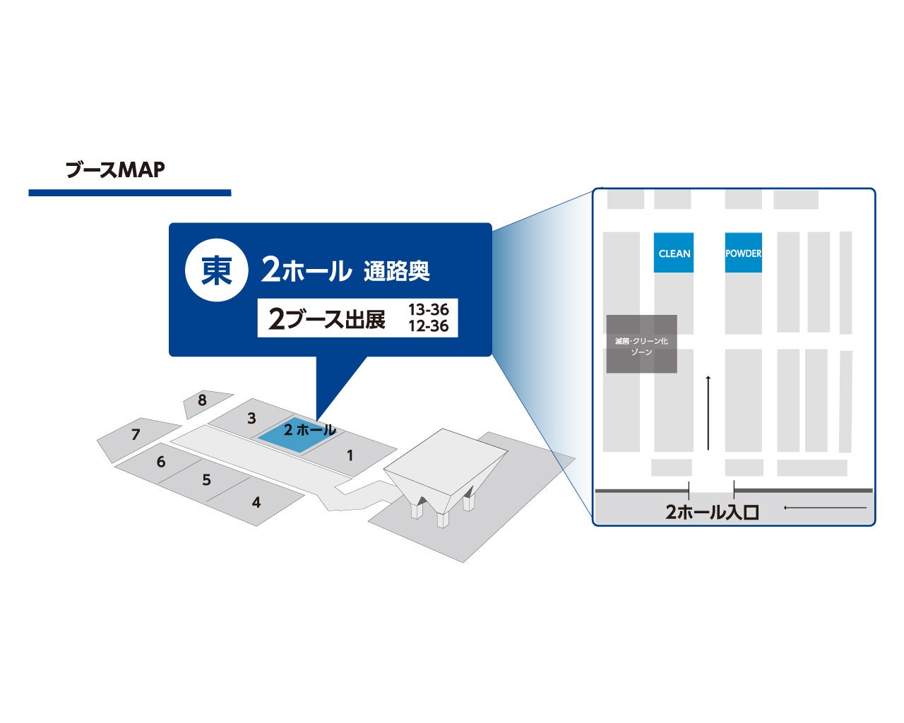ブース | 東2ホール 13-36(クリーン機器事業)、12-36(粉体機械事業) |