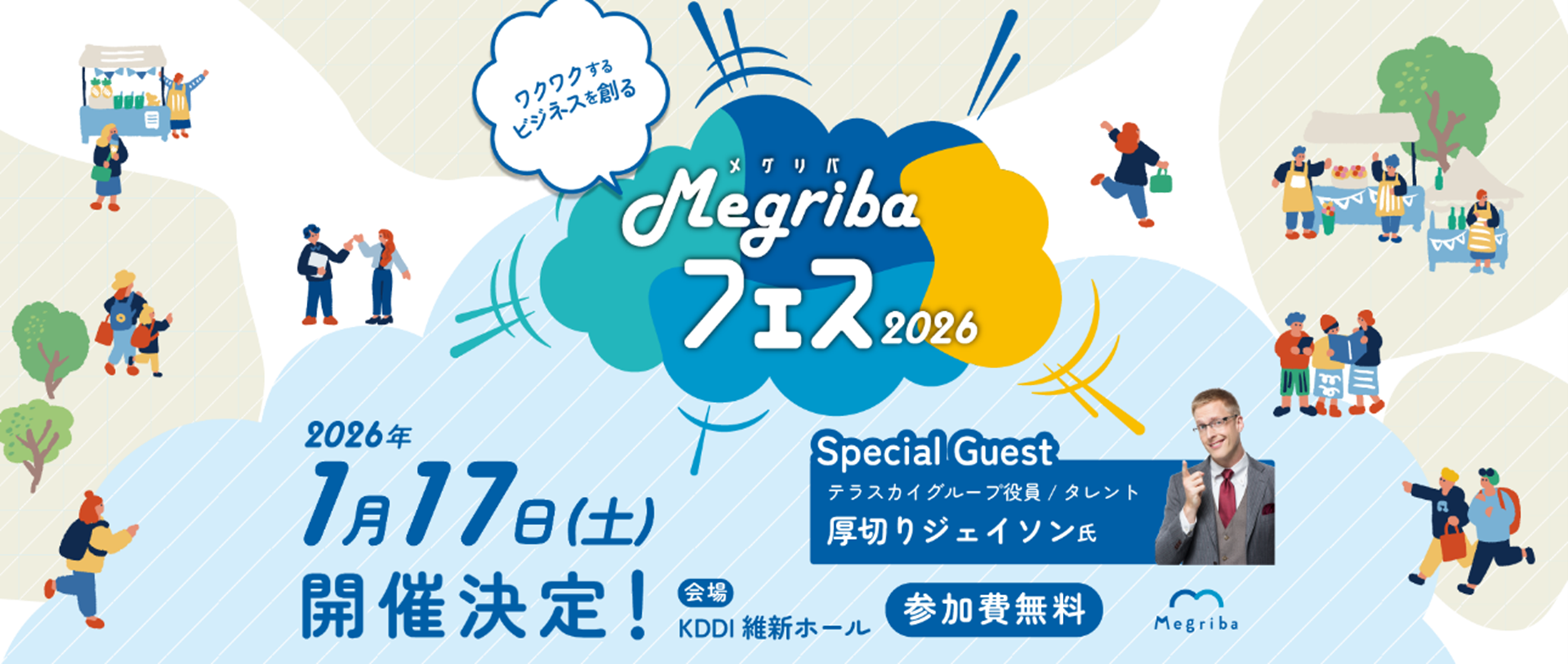 本イベントは、 Megriba が2025年から開催しているイベントで、大人から子どもまで、地域に暮らす誰もが“見て・聞いて・体験して”楽しめる学びと交流の場。起業家やビジネスパーソンだけでなく、近隣住民・家族連れも多く訪れる、冬の人気イベントとして親しまれています。今回は、来場者への感謝を込めて、イベント終盤に「開運もちまき」も実施。新年の福をみんなで分かち合う特別企画です。