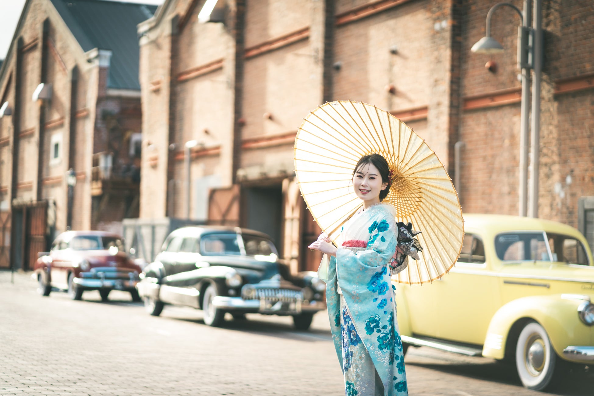 アンティークな衣装に赤レンガとクラシックカーのコラボレーションはAKARENGA WEDDINGならでは。一生に一度の晴れ姿をレトロでクラシカルな振袖フォトを残しませんか?