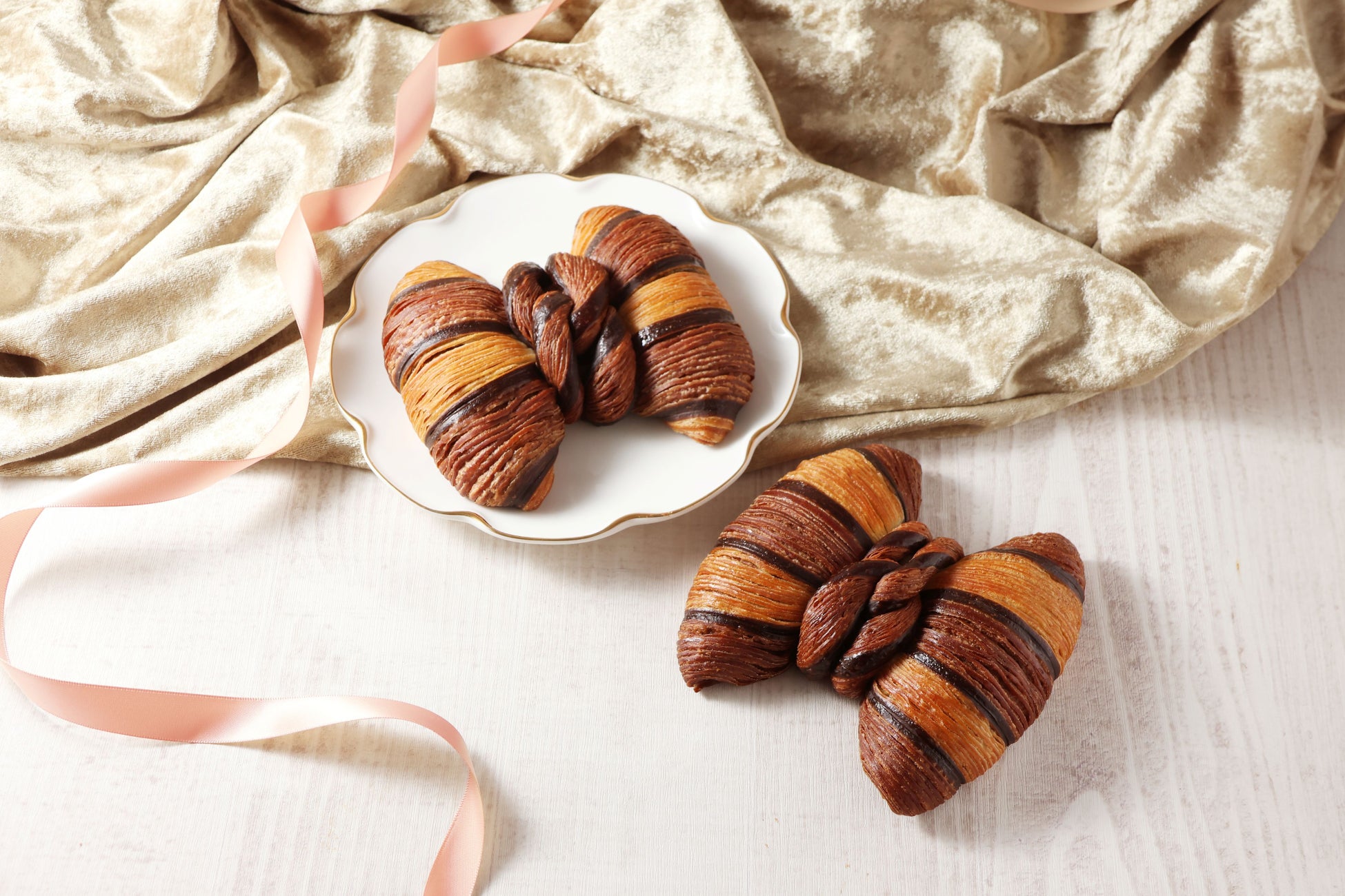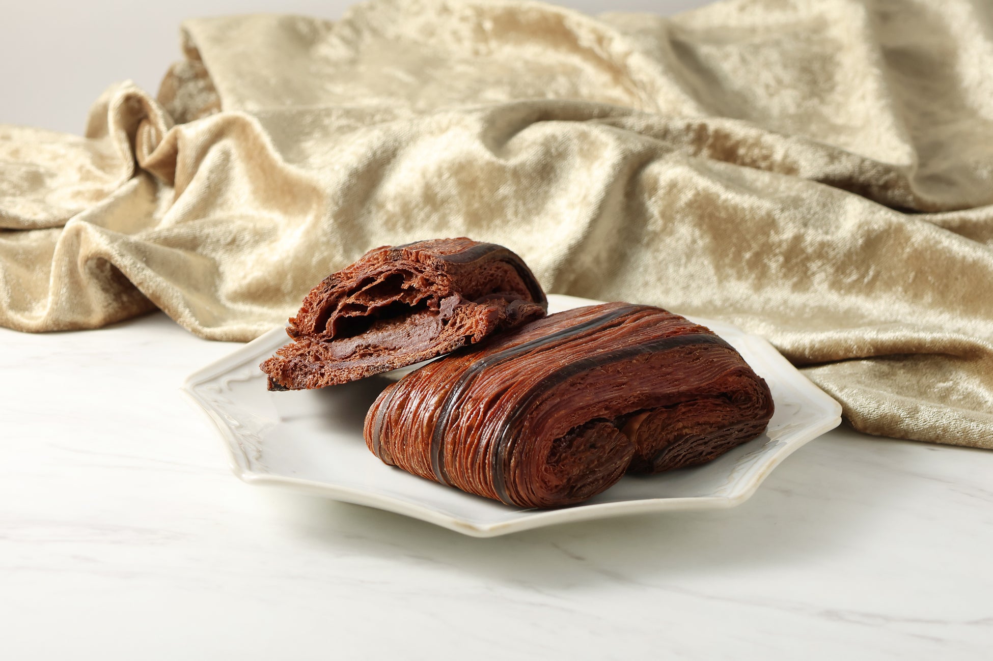 カカオ香るクロワッサン生地に、ハイカカオショコラを使用した濃厚なショコラクリームの上に生ショコラをトッピングし、その2つを包み込んで焼き上げています。 ひとくちごとに広がる、奥深いカカオの味わい。どこを食べてもショコラを感じる、チョコレート好きに贈る贅沢なクロワッサンです。