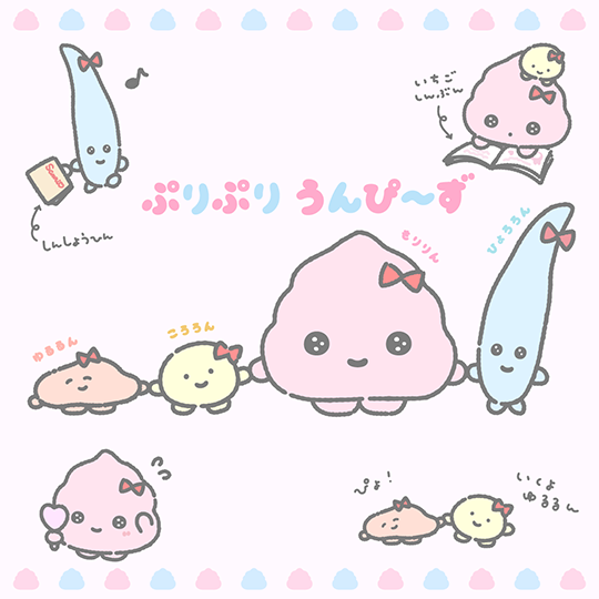 「みんな、きょうもかわいいね」わたしたち、ぷりぷりかわいい『うんぴの精』の4うんぴ組、うんぴ〜ず☆あこがれのキティちゃんみたいになりたくて、みんな、サンリオに入るのが夢なんだ♪おそろいのリボンをつけて、今日もかわいいね!