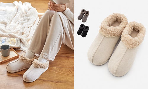 「KEYUCAリラックスウェア」は肌あたりがなめらかで素肌にも心地良い生地を使用し、着心地や動きやすさを意識することで、就寝時にリラックスできるように意識しました。静電気防止の縫製糸を使用することで静電気を軽減し、脱ぎ着する際に髪を崩しにくいように配慮。高級感のあるベロア素材なので、毎日頑張る自分へのご褒美にはもちろん、ギフトにもピッタリなアイテムとなっております。また、室内でもおしゃれでいたい女性のニーズに応え、リラックスできるようゆとりをもたせつつ、きれい見えするためのシルエットといった見た目にもこだわりました。「【拭ける軽量ソール】ボアであったか脱ぎ履きしやすいスリッパ」「洗える 暖かさ逃さないブーツボア」は、まるで「履く断熱材」のような極厚クッションが特徴です。同じプードルボア素材を使用しており、見た目にも統一感があり、温かさが際立ちます。また、フィット感も抜群で、「冬にしかスリッパを履けない派」の方も快適にお過ごしいただけるアイテムです。