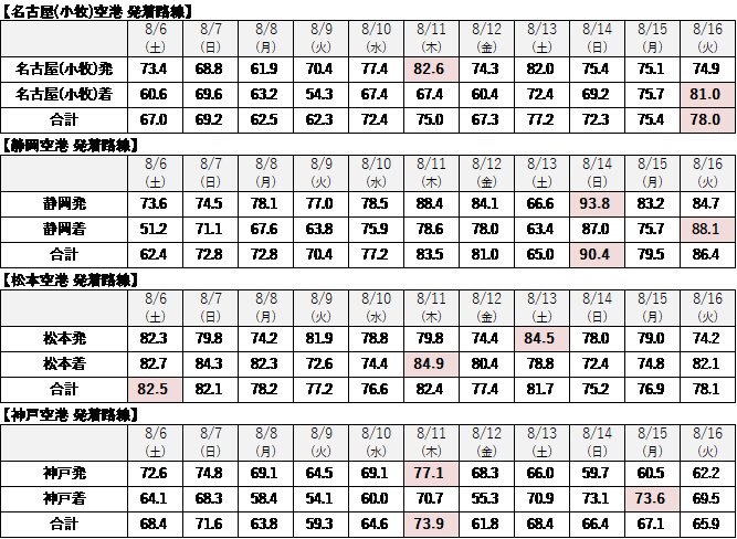 2022年度お盆期間[2022年8月6日(土)~8月16日(火)]のご利用実績について、ご報告いたします。