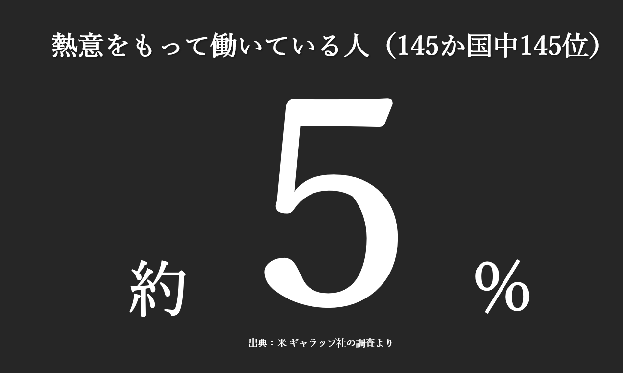 近年、多くの企業で従業員のエンゲージメント低下が問題となっています。Gallup社の調査によれば、日本で仕事に熱意を持つ従業員はわずか5%に過ぎず、これは企業の成長を阻害する深刻な経営課題です 。成果主義の浸透や先行きの不透明感から「頑張る意味が見いだせない」という風潮が広がる中、多くのリーダーが組織の活力低下に悩んでいます 。