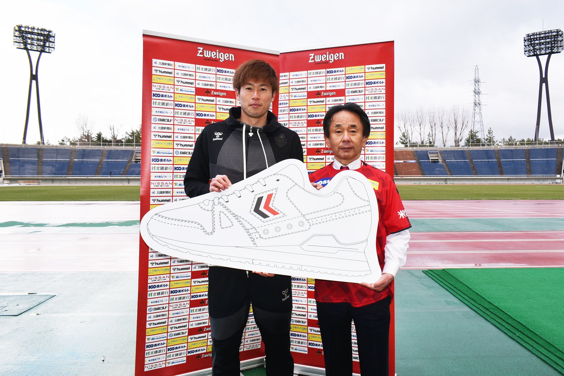 ヒュンメル×ツエーゲン、選手着用コラボスニーカーをオークションに!