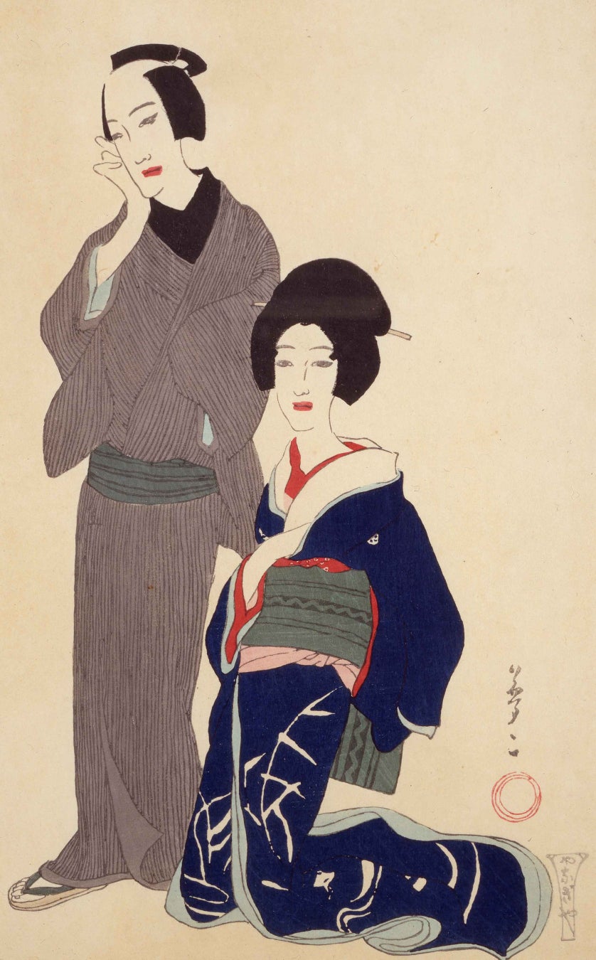夢二が浮世絵の何に魅了され、どのようにその要素を自身の作品に取り入れたのか――江戸趣味や南蛮趣味、美人画、風景画などのモチーフや木版画制作へのこだわりを紹介しながら、浮世絵と夢二作品を比較展示します。