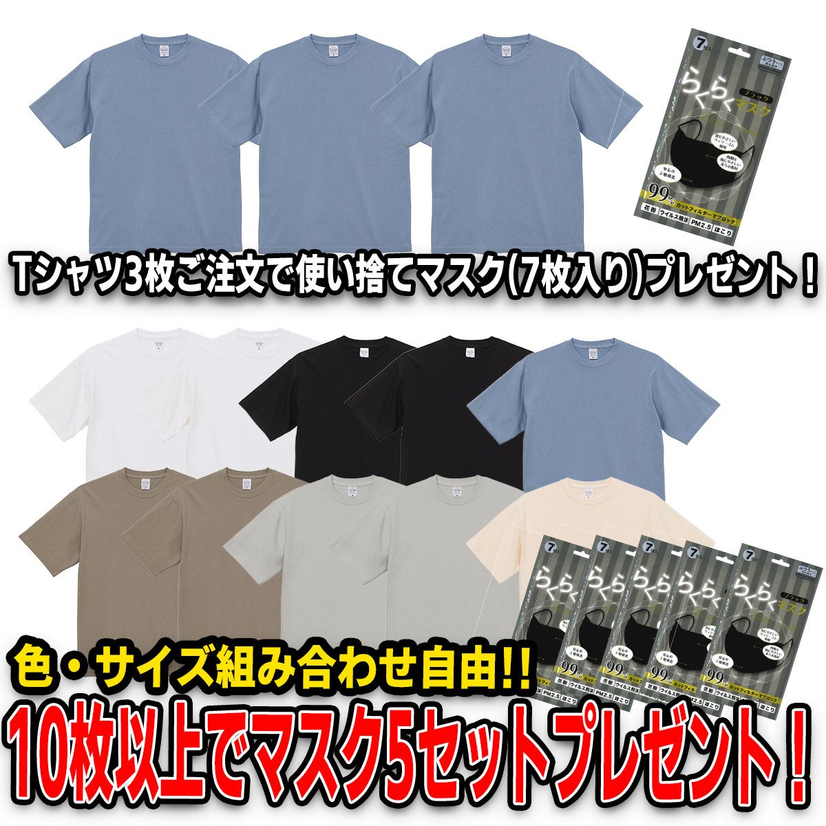 Tシャツ10枚以上のご注文で、使い捨てらくらくマスク(ブラック7枚入)5セット