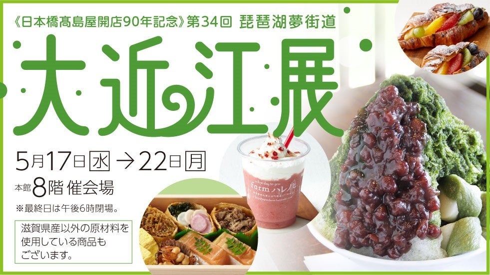 三代和牛の1つとされる「近江牛」、琵琶湖で水揚げされる魚介類、赤こんにゃくなどの郷土料理と美味の宝庫の滋賀県。人気・話題の店舗約40店舗が集まります。人気のスウィーツ・弁当・惣菜の他、開店90年記念品も登場。また、5月21日(日)には彦根市の人気キャラクター「ひこにゃん」も来店します。