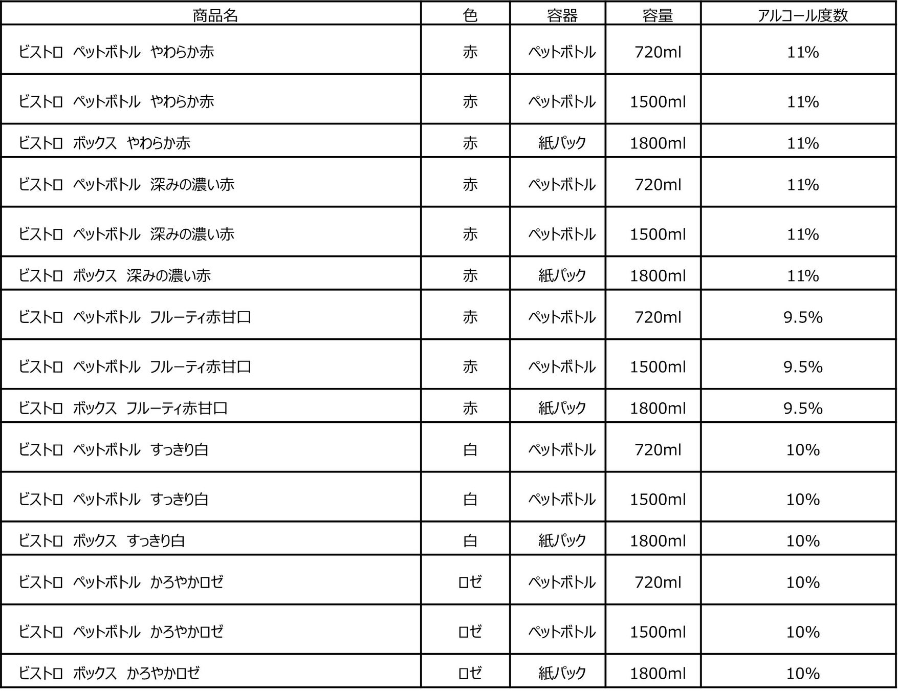 ※「フルーティ赤甘口」・「かろやかロゼ」は中味変更なし