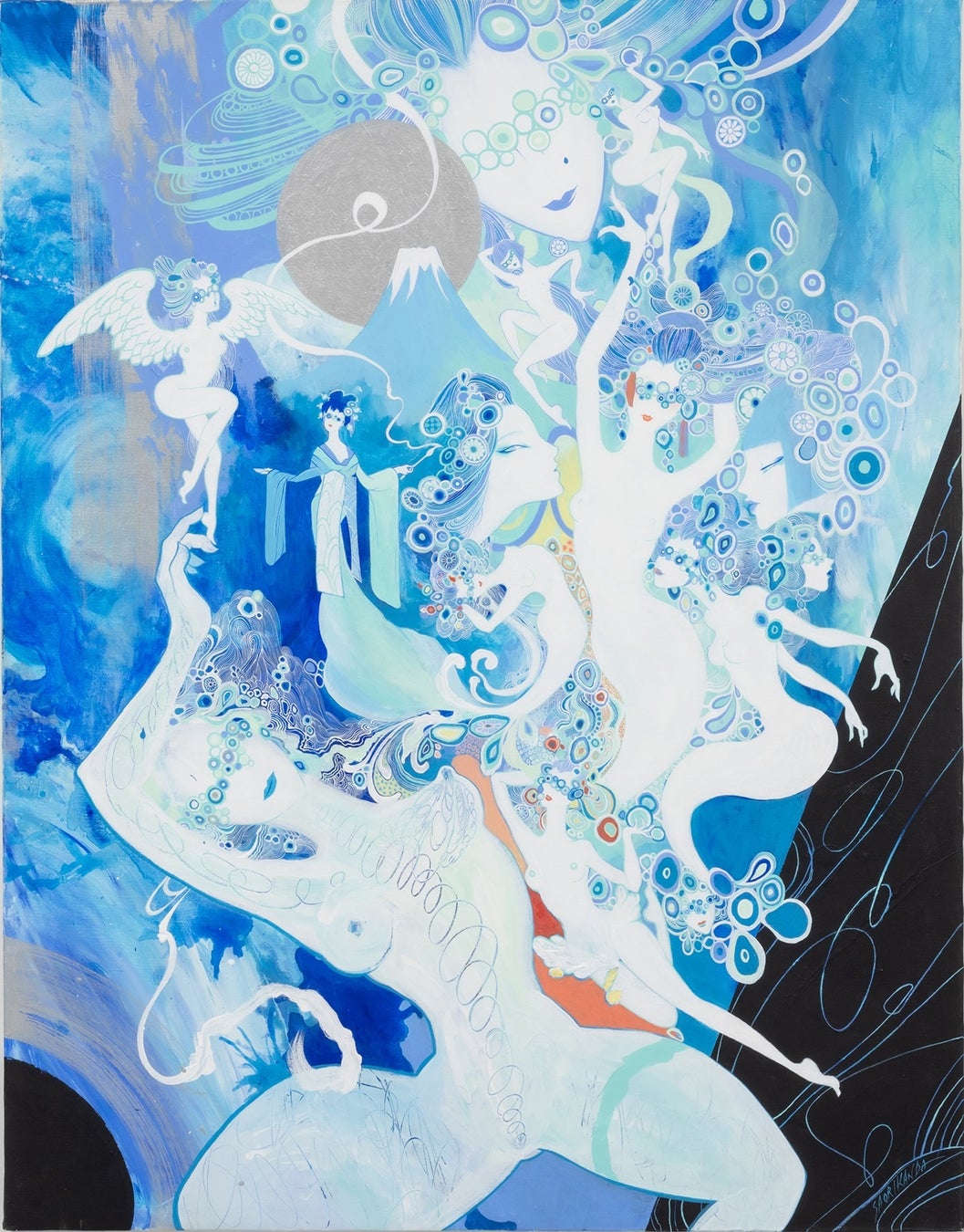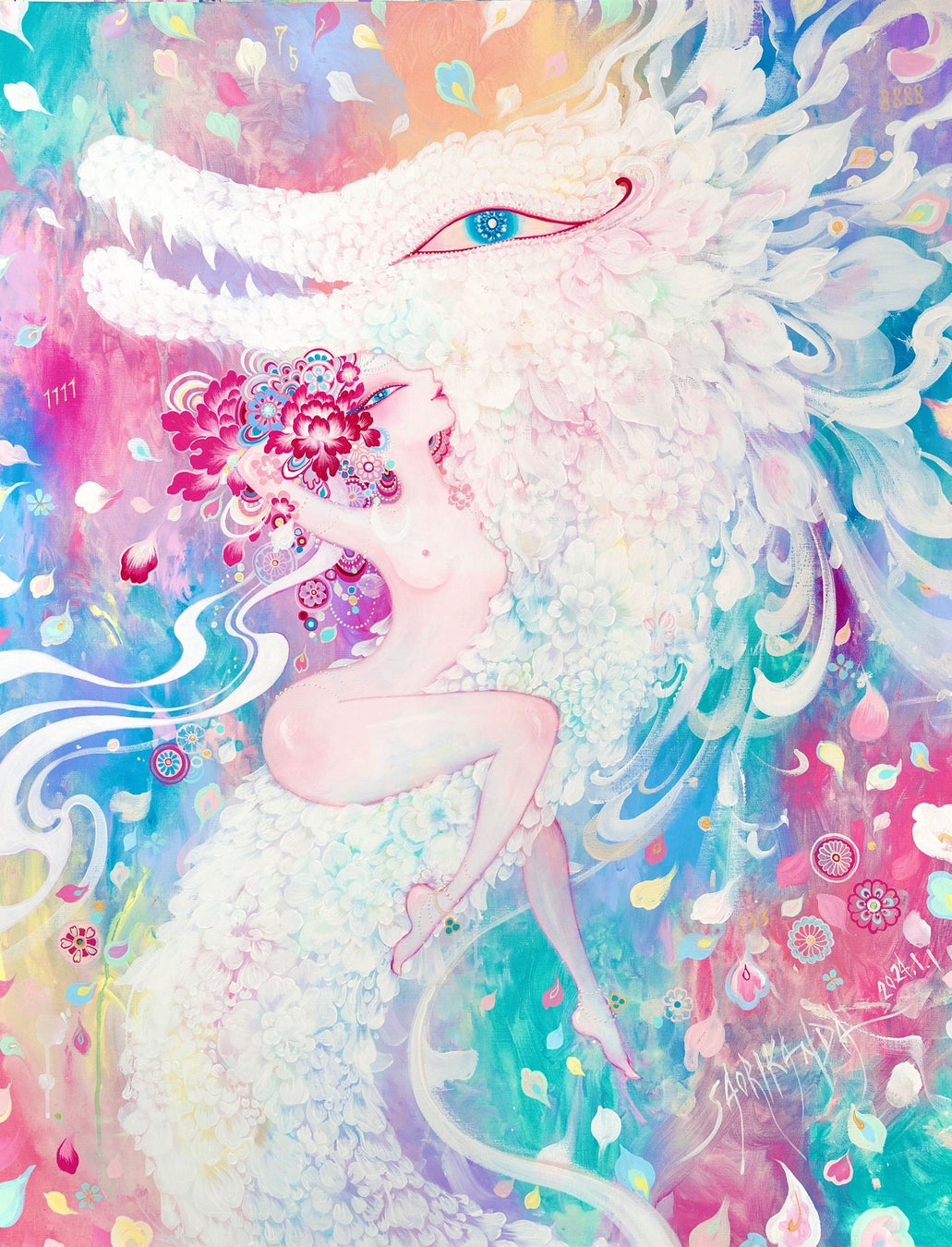 本展では、東京の個展で話題を呼んだ《Dragon ∞ Goddess Harmony 御神器》を中心とした旧作に加え、今年訪れたバリ島で描いた新作を公開します。