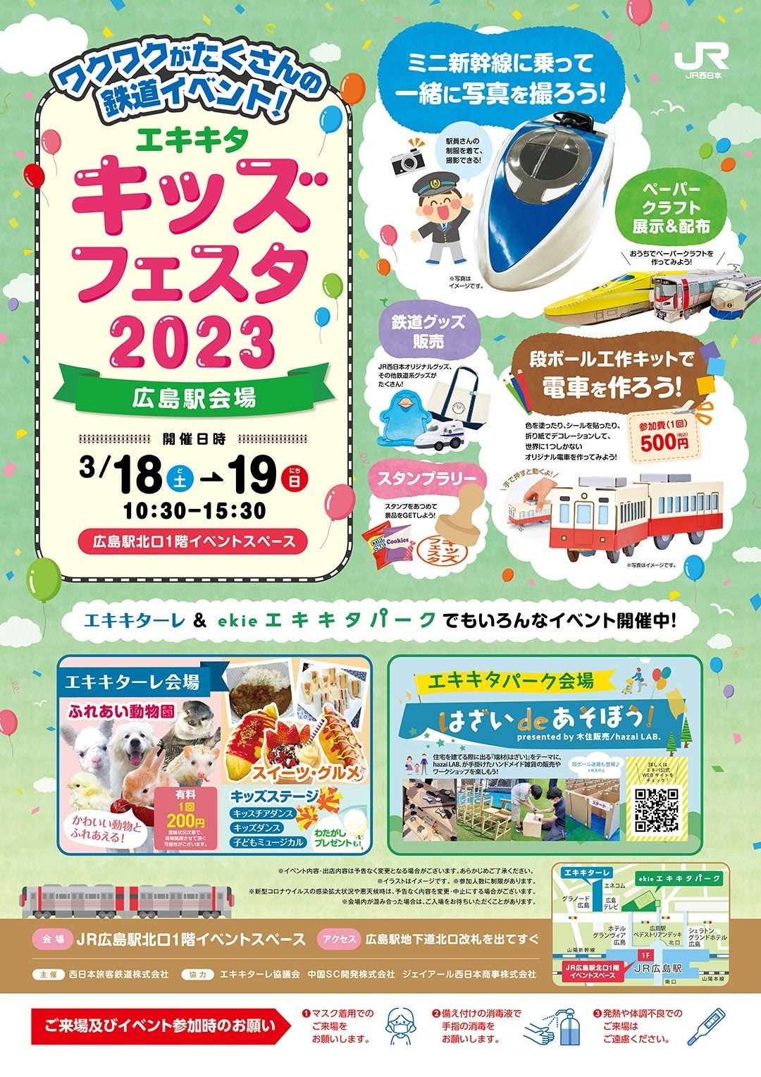 JR西日本中国統括本部では、3月18日(土)、19日(日)の2日間、JR広島駅周辺で実施される「エキキタキッズフェスタ2023」の1会場として、JR広島駅にてお子様向け鉄道イベントを開催いたします。
