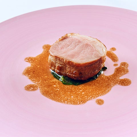 季節の食材とシェフの技を堪能する「ムニュ エトワール ~閃光~」。前菜には華やかな一品「福井県産“甘えび”とロゼスパークリングのジュレ~キャビア添え~」と、黒龍酒造 吟醸酒粕で育った福井県のブランドポーク“黒龍吟醸豚(こくりゅうぎんじょうとん)”を使用したメインディッシュ「福井県産“黒龍吟醸豚”ロティ ジュドポー ~梅の香り~」をご提供します。