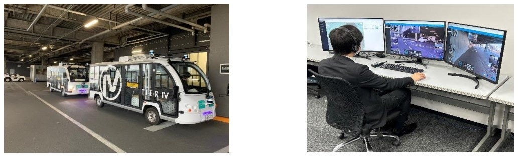 ・ 自動運転バス2台の運行に必要な映像(カメラ14台分)を1名が遠隔監視する自動運転実験