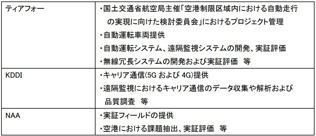 コンソーシアム4社は、成田国際空港において自動運転レベル4相当の導入に向けた実証実験を行い、人手不足への対応や、ヒューマンエラーに起因する車両事故リスクの軽減を目的とした自動運転の導入をめざしています。