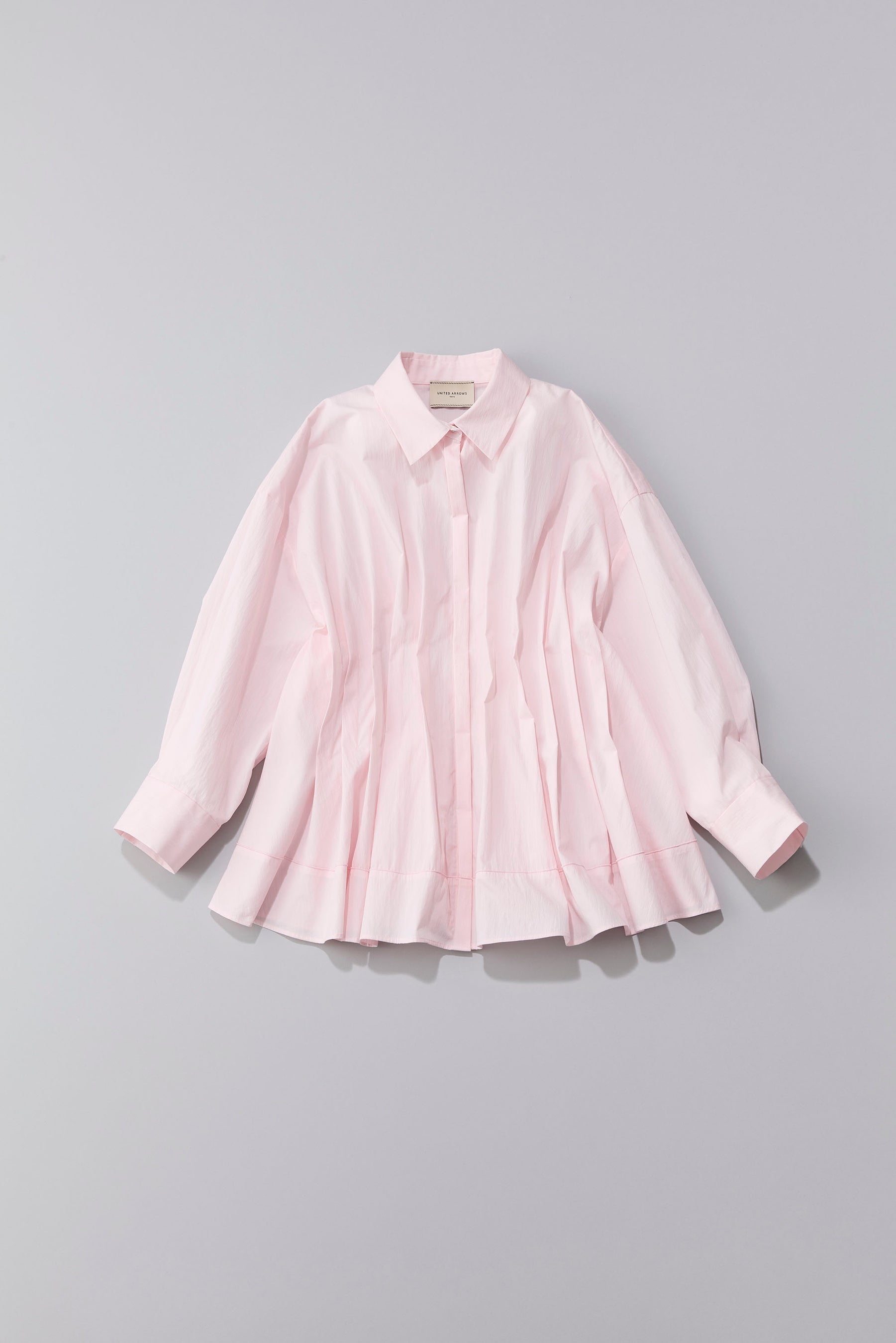 程よくシェイプされたウエストと縦ラインのタックがメリハリのあるシルエットのブラウス。裾の切り替え部分に施したメロー始末もさりげないポイントです。前開きで羽織としても着用でき、着こなしの幅が広がります