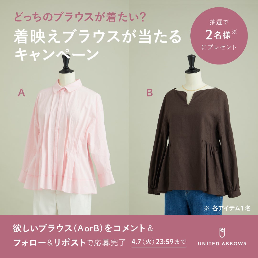 4月1日(水)からユナイテッドアローズ公式Xにおいて、ピンタック ブラウス、または、リネンペプラム ブラウスが当たるプレゼントキャンペーンを実施します。