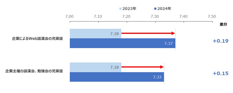 業界全体のNPSが向上している背景について分析をしたところ、ロイヤルティ醸成要因となった「企業によるWeb講演会の充実度」や「企業主催の講演会、勉強会の充実度」において満足度が上昇しました。講演会等に対する評価が高まったことが、業界全体のNPSが向上した一因とみられます。