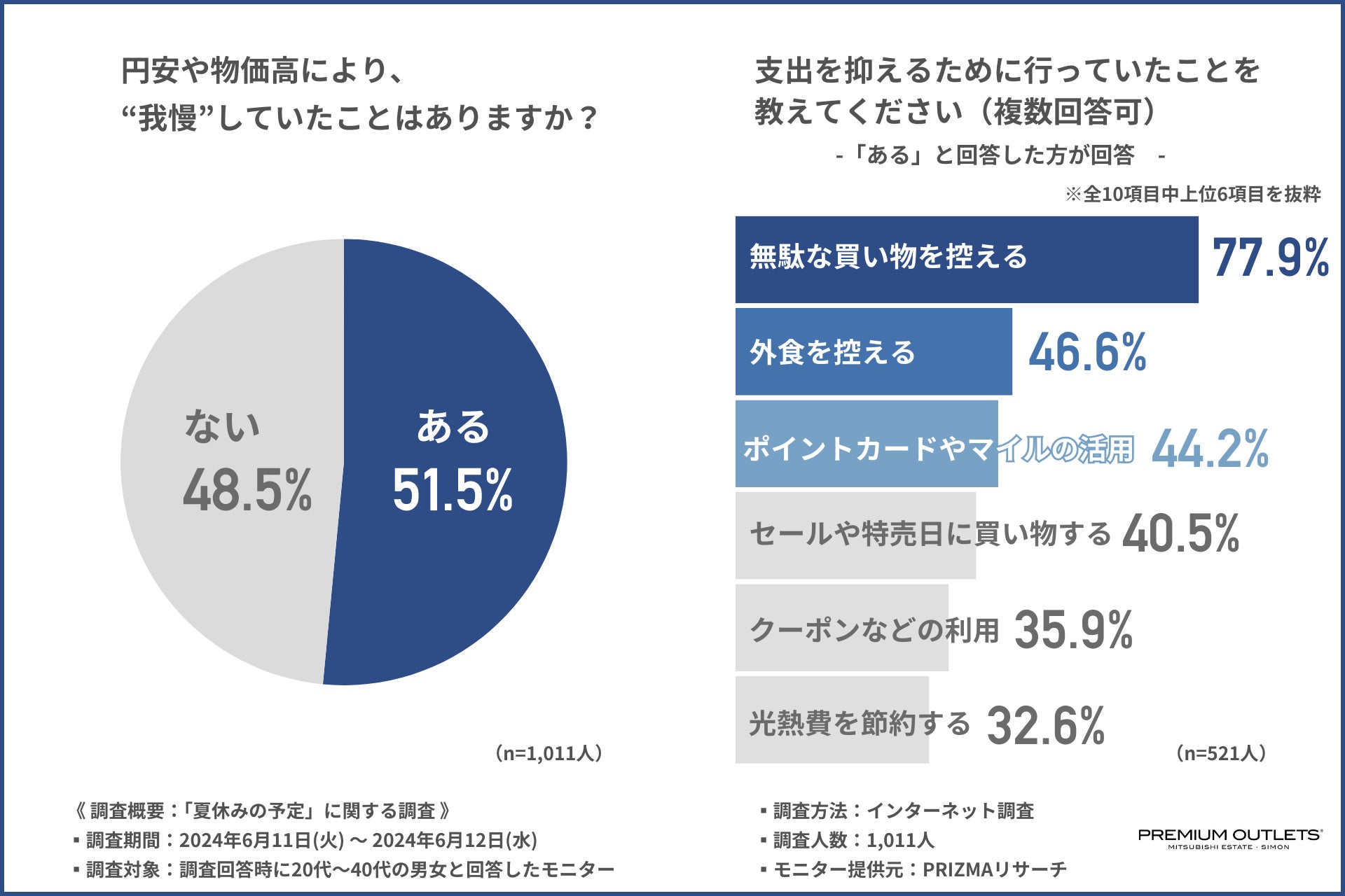 「円安や物価高により、“我慢”していたことはありますか?」と質問したところ、半数超の方が『ある(51.5%)』と回答しました。