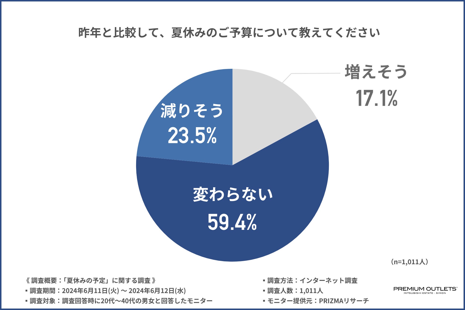 夏休みの予算については約6割の方が昨年と変わらないと回答した一方で、物価高の中でも一定数の方が「増えそう」と回答する結果となりました。