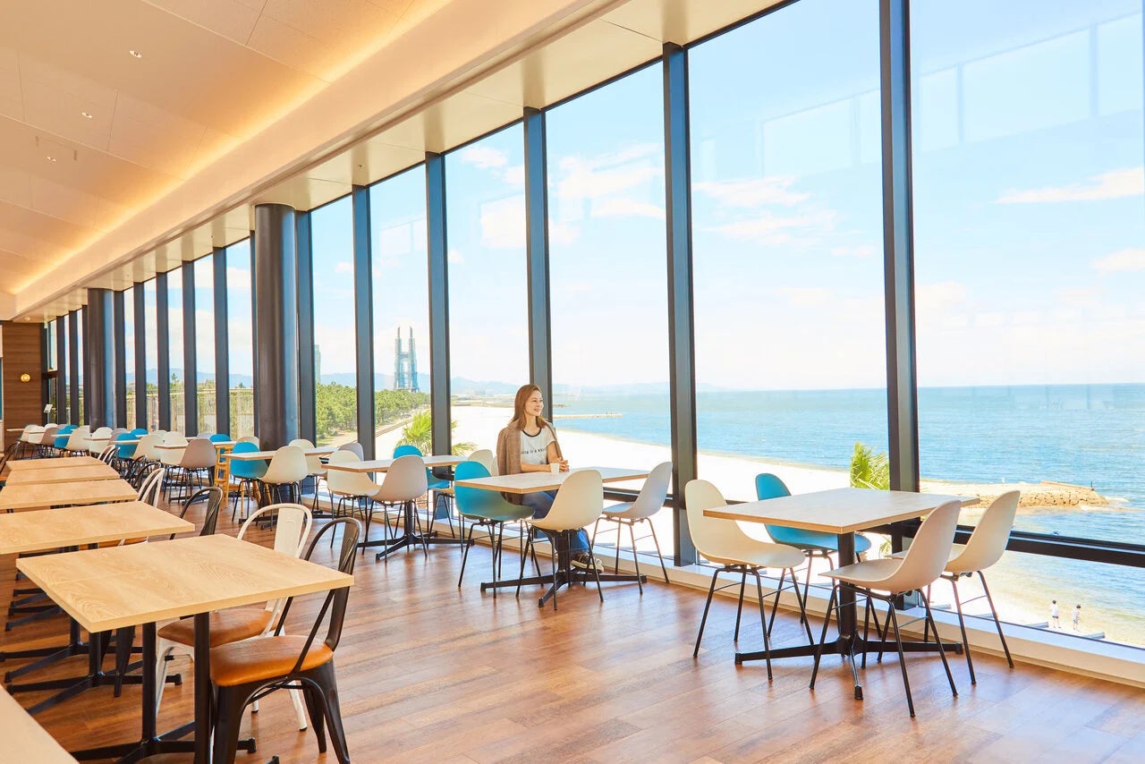 施設内のシーサイドエリアには、宿泊できるグランピング施設や、気軽に体験できるBBQ、海と空を一望できる景色の良いフードホールなど、見どころが満載。