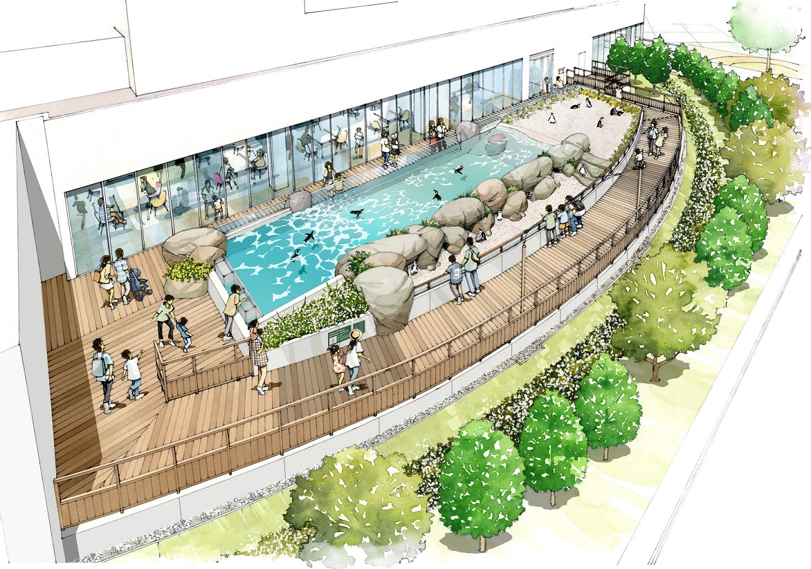 新施設では、海や生きものとの「つながり」を体現する存在として、ケープペンギンをフィーチャーしました。ケープペンギンは、かわいらしい見た目や愛くるしいしぐさから、老若男女問わず親しみを持ちやすく、不動の人気を誇る生きものであること、家族ごとに巣で暮らし、夫婦で協力して子育てをするなど、人との共通点も多くあることから、「つながり」を感じやすい存在であると考えます。