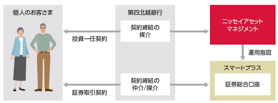 お客様には、第四北越銀行を通じ、投資一任業者であるニッセイアセットマネジメントと投資一任契約を締結していただきます。
