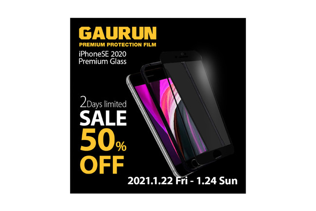 【3日間限定50%off!】GAURUN、ガイドツール付きiPhone SE(2020)用フルカバーガラスが50%offになる期間限定セールを開催