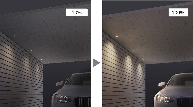 また、「カーポートSC」に設置する照明の中でも最も人気の高いダウンライトのDL-G1型とさらにユニバーサルダウンライトUDL-G1型、キューブウォールライトでも段調光型に対応します。