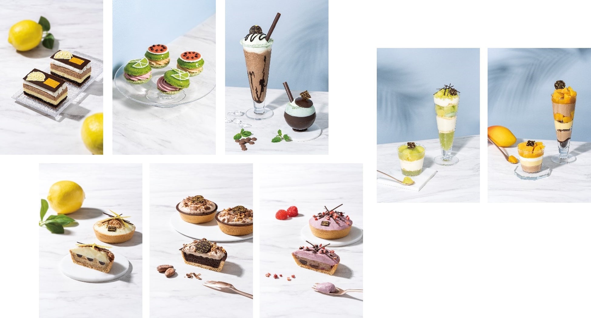 - 種類価格(税込)および販売期間: - ガトーショコラ ア ラ クレーム ドゥ シトロン - イートイン/1,133円、イートインセットメニュー/1793円~、テイクアウト/897円 - マカロン フランボワーズ & スイカ - テイクアウト/789円 - ショコリキサー スペシャル ミルクチョコレート ミント パール - イートイン/1,760円 - ショコリキサー スペシャル ミルクチョコレート ミント グラス - イートイン/1,540円 - アトリエ タルト オ ショコラ フランボワーズ - テイクアウト/702円 - アトリエ タルト オ ショコラ チーズケーキ オ シトロン - テイクアウト/702円 - アトリエ タルト オ ショコラ - テイクアウト/702円 - 2023年5月24日(水)~9月5日(火) ※無くなり次第終了