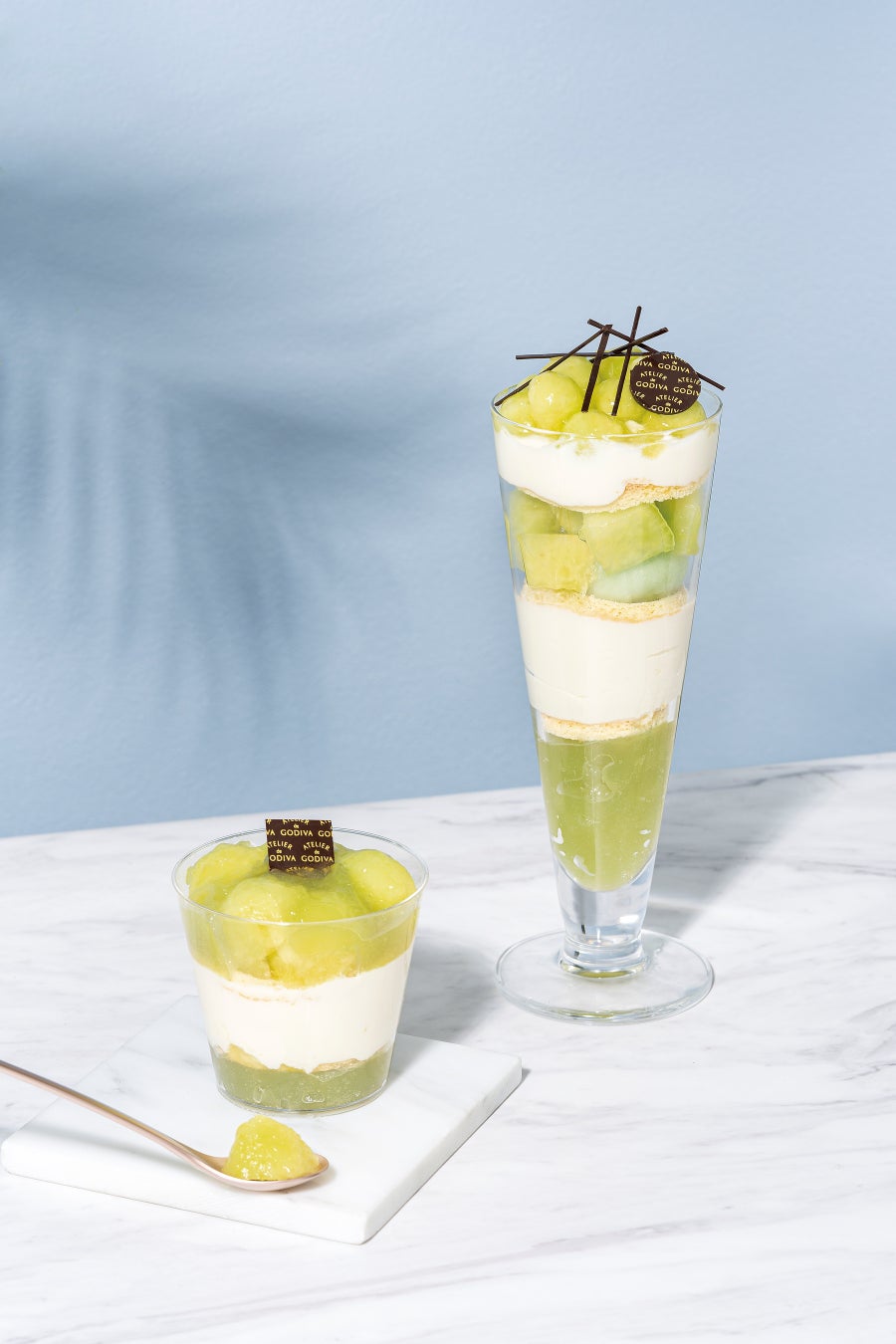 さらに、6月21日(水)からは、冷たいグラスデザート「パルフェ」より、「アトリエ パルフェ アンポルテ メロン」、「アトリエ パルフェ アンポルテ マンゴー」、「パルフェ メロン エ ショコラ ブラン」、そして「パルフェ マンゴー エ ショコラ オ レ」が登場します。フランス語の「アンポルテ」は「お持ち帰り用」を意味し、今回、パルフェはテイクアウトもご用意しました。