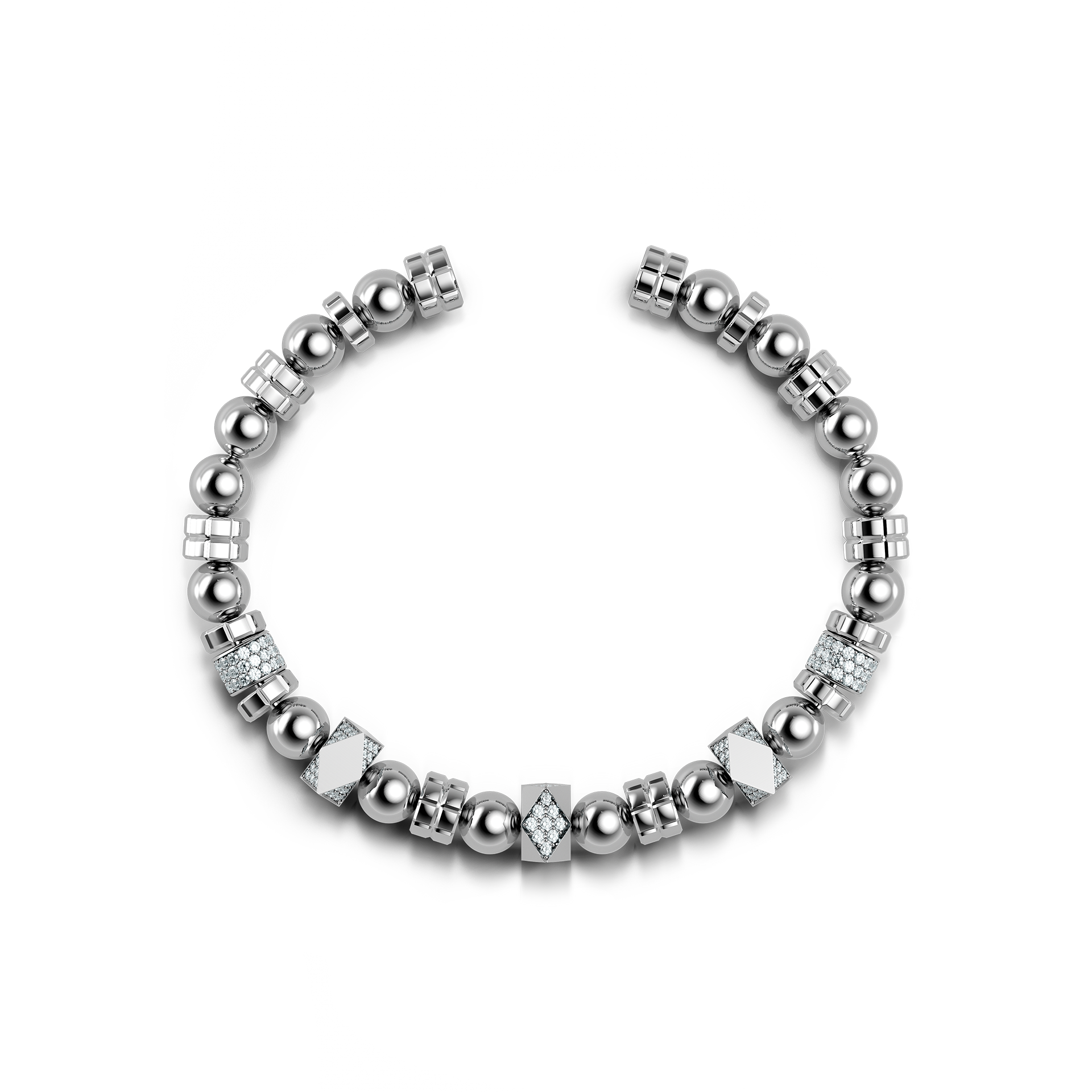 カーボンファイバービーズを使用した「Bangle - Black Carbon」は、軽量で耐久性にも優れておりオールブラックに仕上げたデザインに随所に施されたクリスタルがエレガンスなタッチを加えています。