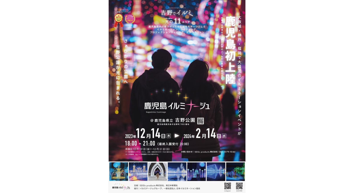 「鹿児島イルミナージュ」は、SDGs products 株式会社様と株式会社南日本新聞社様の共催のもと、鹿児島市をはじめ、各自治体、企業、ボランティアの方々が参加し「みんなで作り、育てるイルミネーション」として「鹿児島の新たな冬の風物詩」にすることを目指したイベントです。
