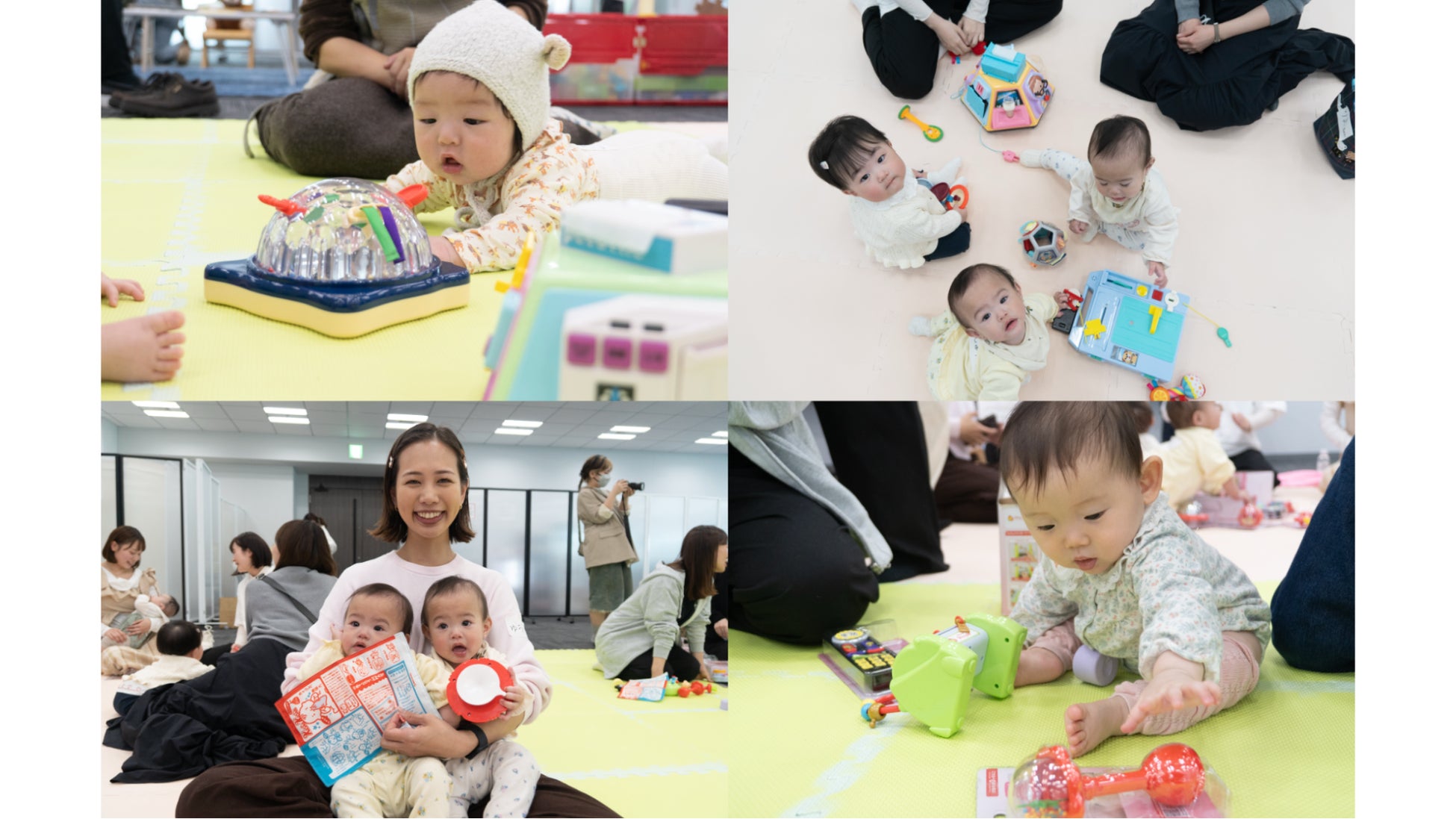 合間には、自由な交流タイムを設けました。会場に設置されたフォトスポットでお子さまとの記念撮影を楽しんだり、月齢が近い赤ちゃん同士が一緒に遊んだり、ママたちが子育て情報を交換したりと、オフラインならではのあたたかい交流の場となりました。