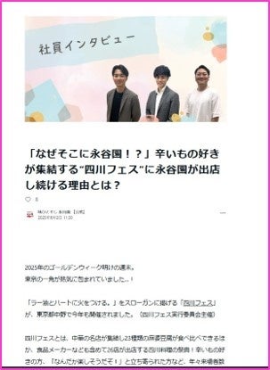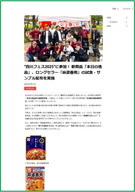 株式会社 永谷園(社長:掛谷 浩志、東京都港区)は、日本最大の四川料理の祭典「四川フェス2025@中野麻婆豆腐商店街(主催者:四川フェス実行委員会)に2025年5月10日・11日の両日に参加しました。