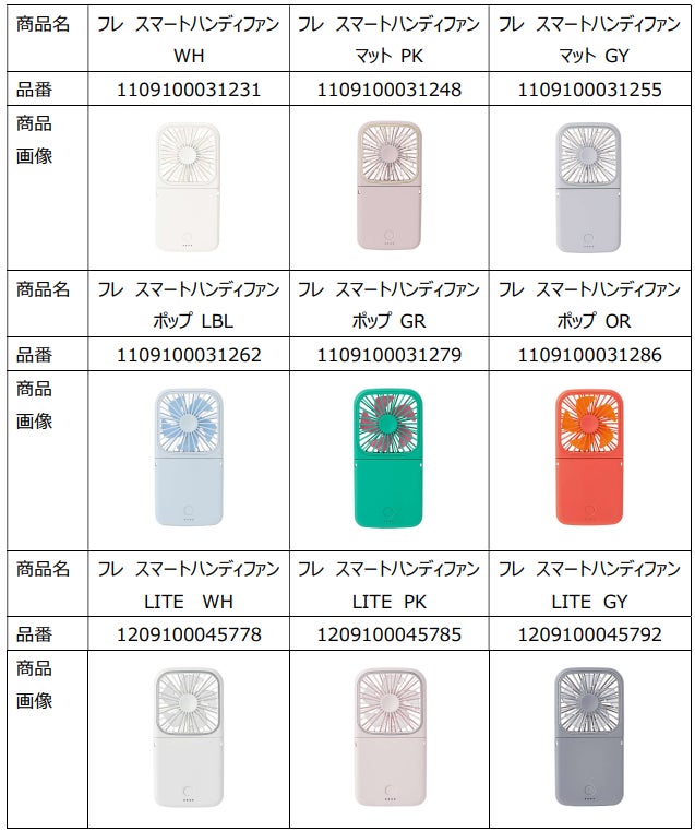 このたび、弊社が2025年3月から6月まで販売いたしました「フレ スマートハンディファン(2025年製)」につき、商品不良(充電ICの不具合による動作不良や発熱など)の発生率が高い状況にあることから、関係省庁との協議を踏まえ、対象商品を自主回収することといたしました。