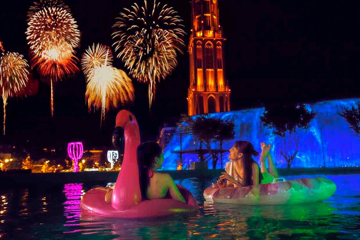 夜は「ガーデンプール」「森のプール」ともに、ラグジュアリーなナイトプールに変身!ガーデンプールでは光の滝とウォーターキャノンのコラボで夜限定の光のショーを楽しめます。イルミネーションとともに写真をたくさん撮ってみては。花火開催日にはプールから花火鑑賞もできますよ✩森のプールは七色の光に包まれ、大人っぽい雰囲気に。幻想的な光の中でゆっくりするのはいかが?