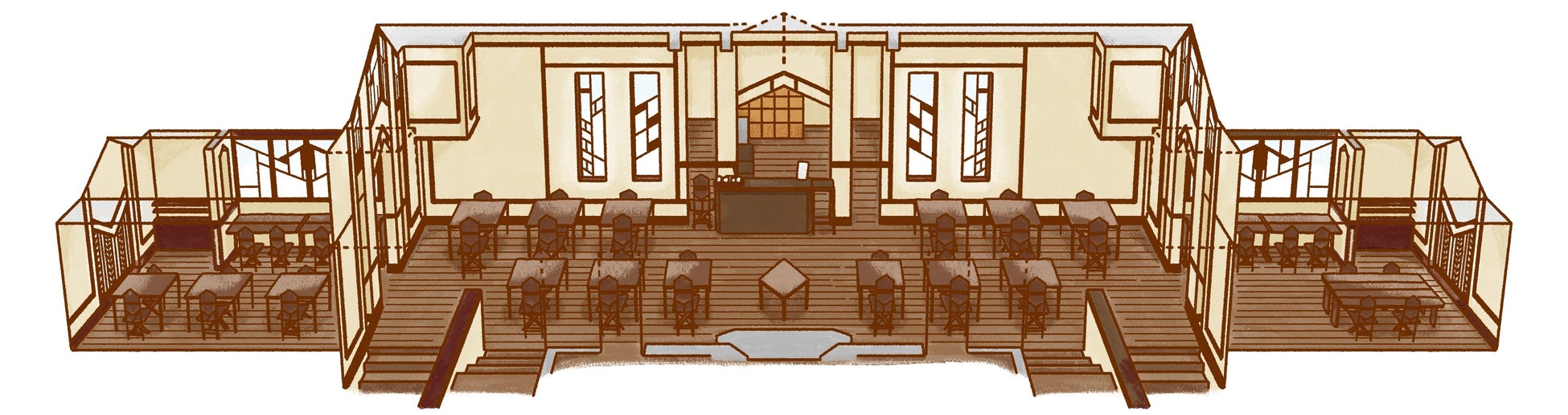 特徴的な建築10軒には、詳細建築イラストを掲載。建物の断面や全体像など、写真では見られないポイントを視覚的に解説。