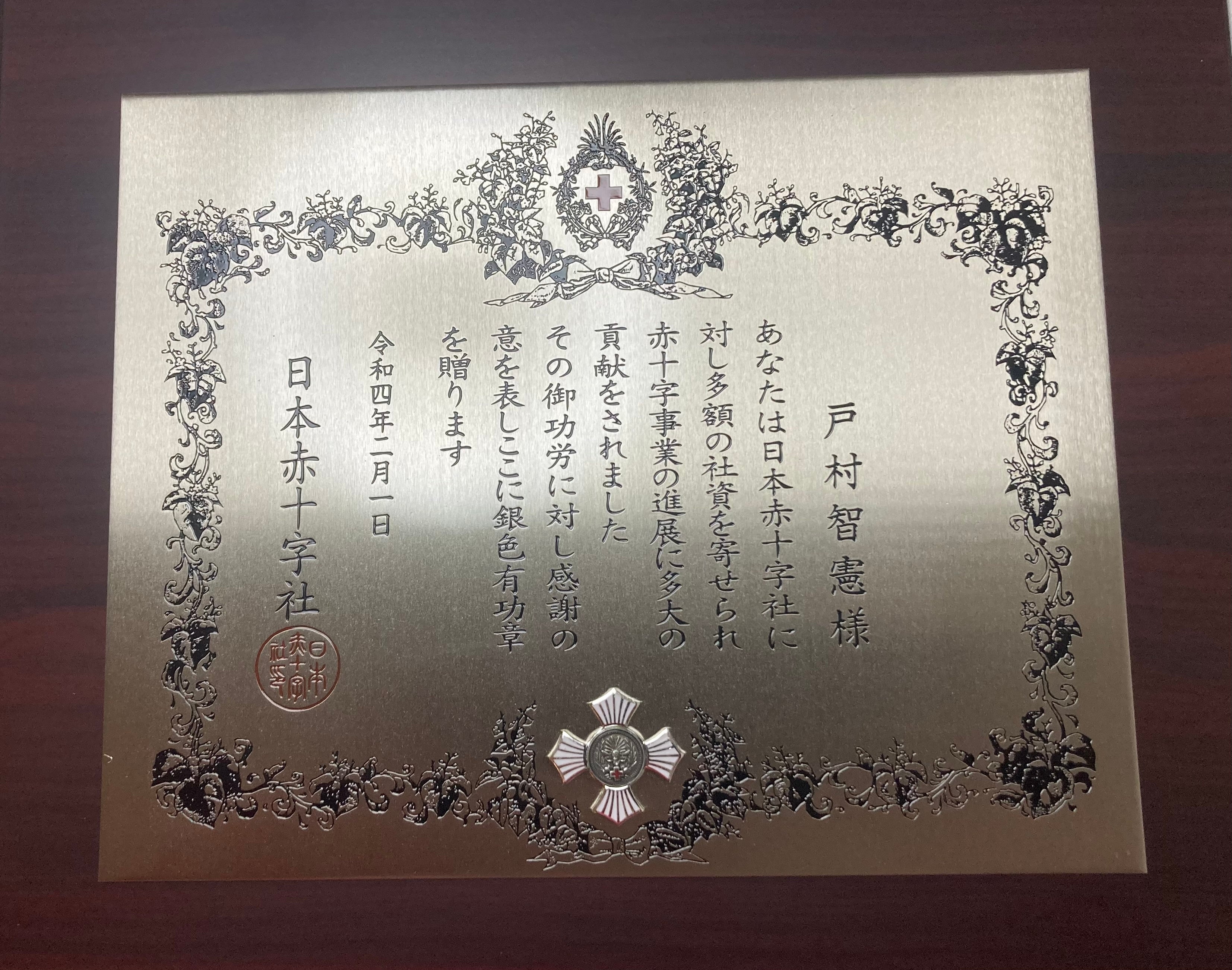 日本赤十字社により社会貢献活動に関して有功章を授与。隊友会より特別感謝状。母校の大阪府立天王寺高等学校より文化功労章を受賞。米国でのMBA修了時に人物評価・学業評価で学長推薦により全米トップ0.5%のみに授与される全米優秀大学院生を受賞。
