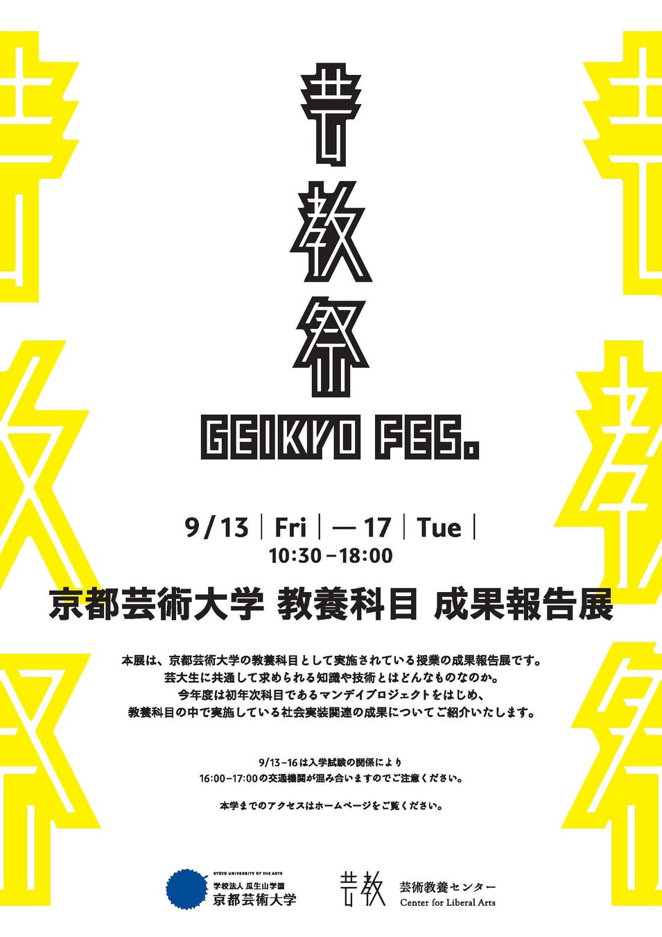 本展は、京都芸術大学の教養科目として実施されている授業の成果報告展です。今年度は初年次科目であるマンデイプロジェクトをはじめ、教養科目の中で実施している社会実装関連の成果についてご紹介いたします。
