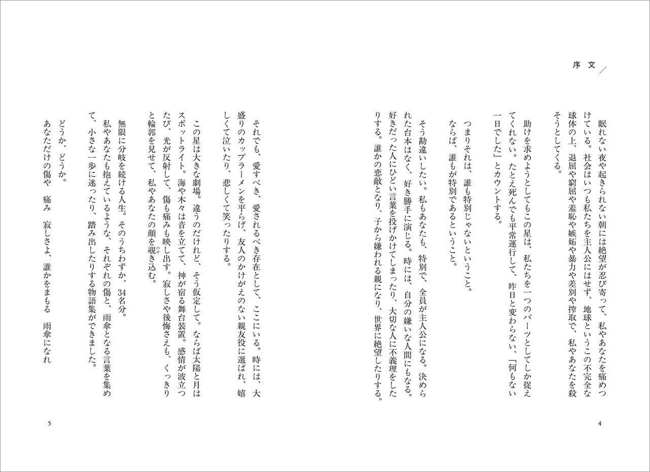 ある日、何も持たずに外に出たら突然大雨が降ってきて、もう今日は全部ダメだ〜とびしょ濡れになりながら絶望しかけたときに、ふと大きな雨傘を差し出してもらえたような、そんなやさしさを敷き詰めるイメージで書きました。